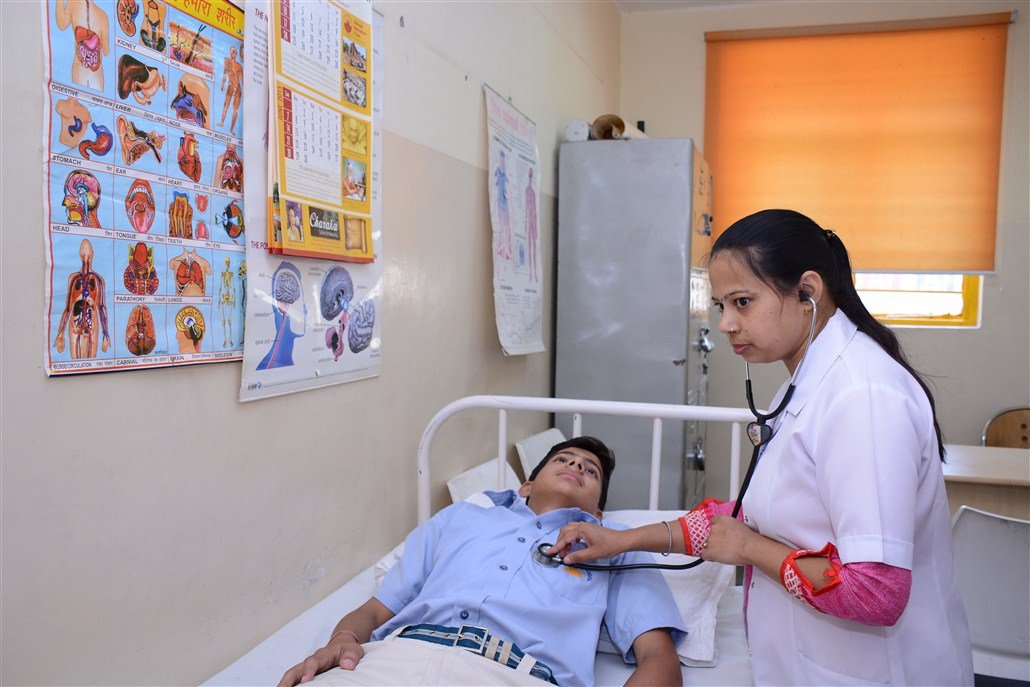 The school houses a Medical Room accessible during school hours. Skilled Staff Nurse is in attendance to ensure that all emergencies are treated with utmost care and attention. Regular medical checkāups are conducted and detailed medical records of students are maintained once a year along with valuable suggestions. Students are mentored on the various aspects diseases, first aid, life style, diet management. The students are also oriented about the importance of developing immunity.